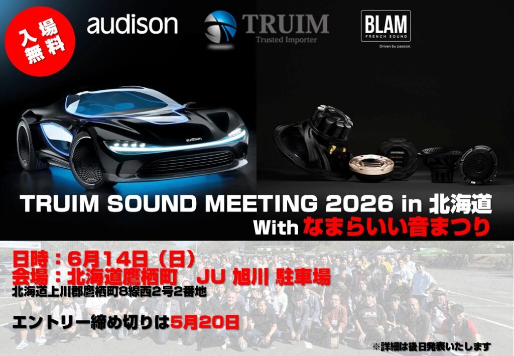 では、本日は弊社が主催するトライムサウンドミーティングですが、今年も開催するのはすでにご案内済みですが、今年初開催となります「TRUIM SOUND MEETING in 北海道」をご案内いたします。
